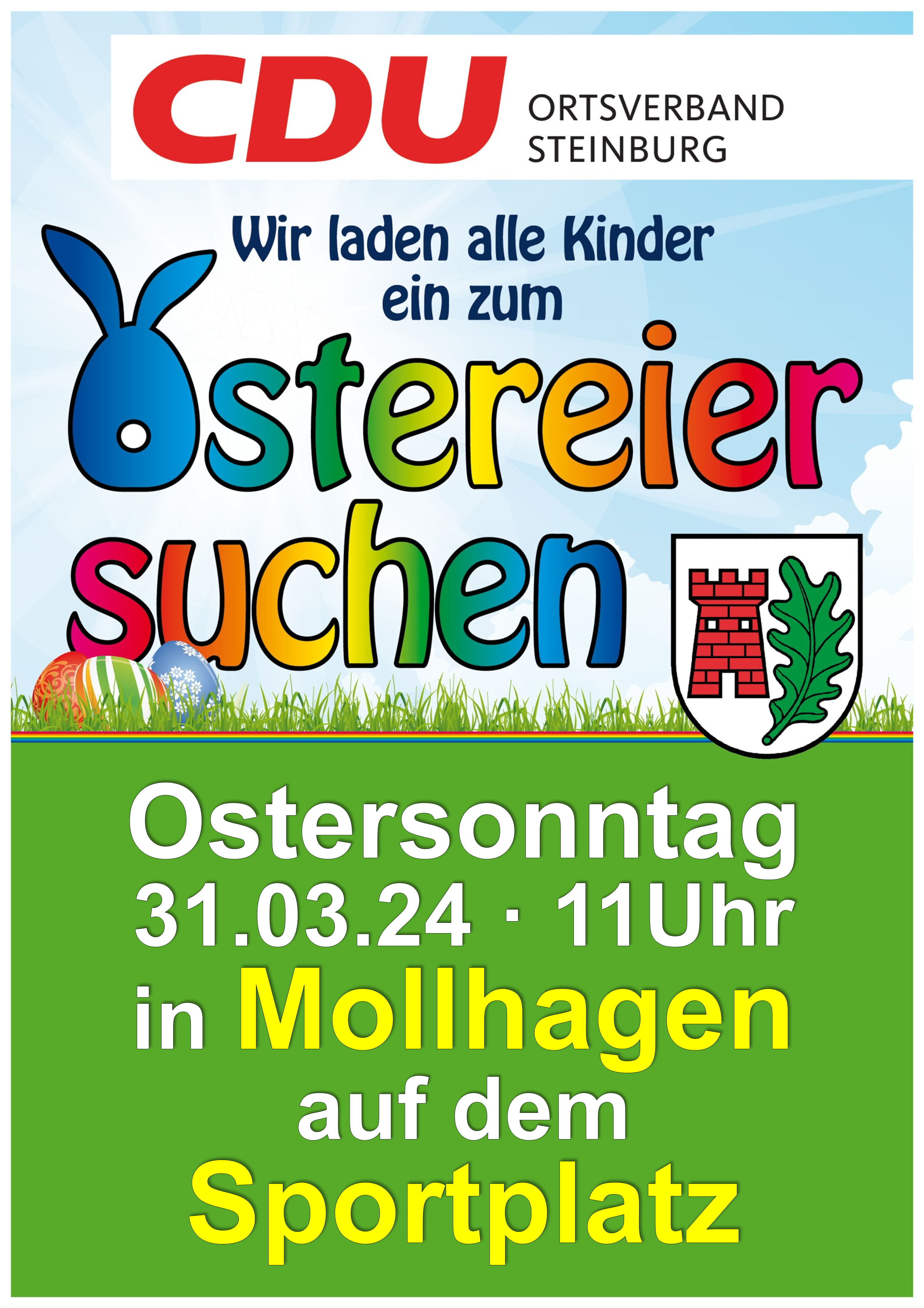 20.03.2024 am Ostersonntag, 31.03.2023 um 11 Uhr in Mollhagen auf dem Sportplatz. Empfehlen Sie uns!Bei Facebook teilen Bei Twitter (X) teilen Bei Whatsapp teilen Diese Seite drucken Diese Seite einem Freund schicken